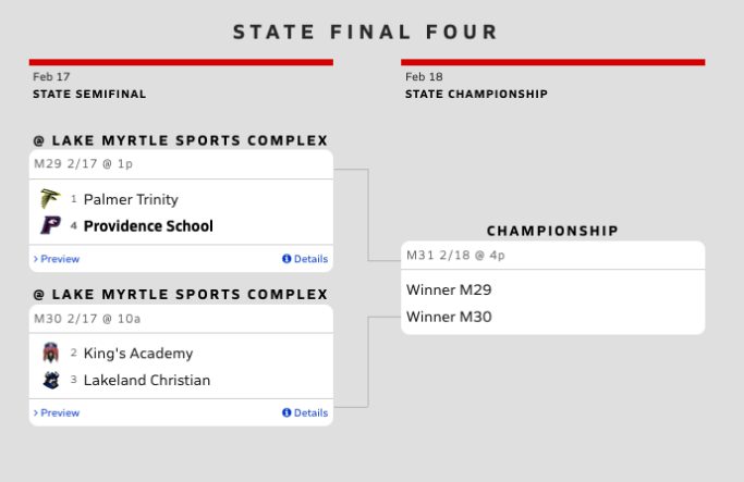 Providence capped off a strong 14–4–2 regular season with a dominant 3–0 District Championship win over Episcopal, followed by an 8–0 victory over Branford in the regional quarterfinals and a semifinal win over Maclay, setting up yet another regional championship showdown against Episcopal.